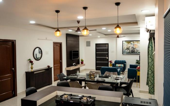 Experience an abundance of unparalleled facilities and features at WEST FRONT SHAAKYA LAVISH THREE BHK FLATS.For visitors traveling by automobile, complimentary parking is available.At WEST FRONT SHAAKYA LAVISH THREE BHK FLATS, every guestroom is provided with convenient amenities and fittings to ensure a comfortable stay.Enhance your experience at apartment with the knowledge that certain rooms are equipped with linen service and air conditioning for your convenience. Certain rooms boast in-room amusement features such as television and cable TV, offering guests an enjoyable stay.It is worth noting that certain guest bathrooms feature a hair dryer and toiletries for your convenience.