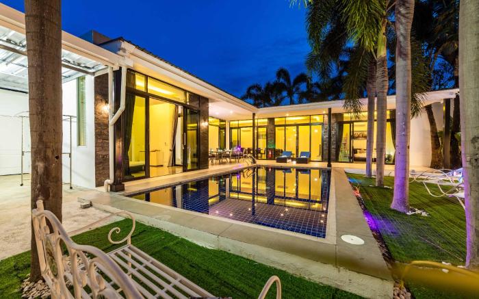 Three Bedroom Pool Villa (BL2) provides flawless service and all the necessary facilities for visitors.When arriving by car, you'll be grateful for the on-site complimentary parking at private villa. In order to ensure the utmost level of relaxation, the guestrooms feature an inviting design and are equipped with all basic necessities, creating a delightful stay experience.To ensure a pleasant stay, a selection of rooms at private villa come furnished with linen service and air conditioning, all designed with your ease in mind. Selected rooms offer in-room amusement like television as a source of entertainment for guests to enjoy. Understanding the significance of bathroom facilities in enhancing visitor contentment, private villa offers a hair dryer and toiletries within a few chosen chambers. Throughout the day, engage in the entertaining activities available at Three Bedroom Pool Villa (BL2). Unwind by the pool at private villa and cherish a leisurely moment.