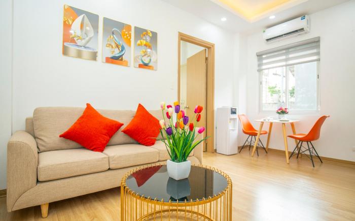 In order to ensure the utmost level of relaxation, the guestrooms feature an inviting design and are equipped with all basic necessities, creating a delightful stay experience.To ensure a pleasant stay, a selection of rooms at hotel come furnished with linen service, blackout curtains and air conditioning, all designed with your ease in mind. Several chosen accommodations at Sumitomo 11 Apartment 5-39 Linh Lang have a separate living room incorporated into the room design.In select rooms, visitors can enjoy a touch of amusement with the availability of television and cable TV for their entertainment needs.Within specific rooms, a refrigerator, bottled water, instant coffee, instant tea and mini bar is conveniently available for your use.Understanding the significance of bathroom facilities in enhancing visitor contentment, hotel offers a hair dryer, toiletries and towels within a few chosen chambers.