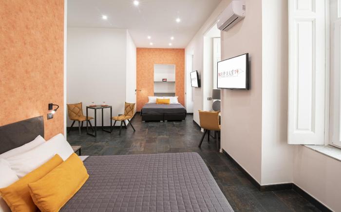 Great care is taken to ensure guests experience comfort through top-notch services and amenities. Remain linked during your visit by utilizing the complimentary internet access available. Crafted for coziness, every guestroom provides an array of features, guaranteeing a tranquil night's sleep while maintaining the level of comfort.For an elevated experience at apartment, select rooms are equipped with linen service to improve your stay.At Napul'è 19 - Quadrupla, a selection of rooms can be found that showcase unique design elements such as a balcony or terrace. For certain chosen rooms, guests can enjoy in-room amusement like television and cable TV as a part of their stay.Maintain your cleanliness and comfort using a hair dryer and toiletries available in select guest restrooms.