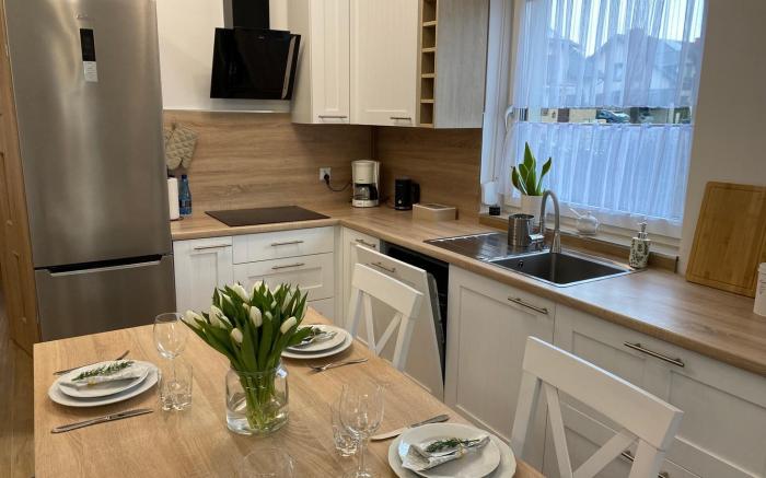 Diamentowa 7 Rent Home provides flawless service and all the necessary facilities for visitors.Remain linked during your visit by utilizing the complimentary internet access available. The hotel offers complimentary parking for guests who arrive with their own mode of transport.Repeatedly enjoy your best-loved attire with the aid of the laundromat available at Diamentowa 7 Rent Home .Need some relaxation? Your room features daily housekeeping to make your stay even more comfortable and enjoyable.The hotel is completely smoke-free.Crafted for coziness, every guestroom provides an array of features, guaranteeing a tranquil night's sleep while maintaining the level of comfort. For a more enjoyable stay, select rooms at hotel are equipped with linen service, blackout curtains and air conditioning. At Diamentowa 7 Rent Home , a selection of rooms can be found that showcase unique design elements such as a balcony or terrace. For certain chosen rooms, guests can enjoy in-room amusement like television and cable TV as a part of their stay.Rest assured that your hydration needs will be met, as some guestrooms are equipped with a refrigerator, instant coffee and instant tea. It is worth noting that certain guest bathrooms feature a hair dryer and toiletries for your convenience. Do you possess exceptional culinary skills? Prepare your meals personally within the hotel at its shared kitchen.