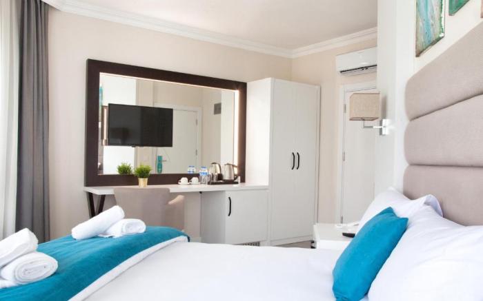 Siete Hotel offers top-notch services and amenities, ensuring guests experience utmost comfort. Share your photos and respond to emails at your convenience, thanks to the free Wi-Fi internet access offered by hotel. Should you require transportation to or from the airport, hotel is able to organize it prior to your arrival date. Services offered by car hire and shuttle at the hotel ensure effortless exploration of Antalya.Reception services such as concierge service and express check-in or check-out are available to accommodate your requirements.Should you desire access to the top entertainment in the city, assistance can be provided by the hotel's ticket service.Traveling with minimal baggage is achievable at Siete Hotel, as the hotel's dry cleaning service and laundry service ensures your garments stay fresh. Room amenities like room service and daily housekeeping contribute to making a perfect selection for your stay. Smoking is limited to specified smoking zones. Each accommodation at Siete Hotel is thoughtfully created and adorned to provide visitors with a comfortable, home-like atmosphere. In certain rooms, the hotel offers linen service and air conditioning for guest convenience and satisfaction. At Siete Hotel, the uniquely tailored rooms provide a configuration choice resembling a balcony or terrace. In select rooms, guests at the hotel can enjoy top-notch in-room entertainment with television and cable TV available for their convenience. Rest assured, in a few chosen rooms, the presence of mini bar can be found.Siete Hotel offers a hair dryer and toiletries in the restrooms of specific accommodations. Embark on your holiday experience in the most ideal manner. Commence each morning of your visit with an on-site breakfast.Experience an unforgettable evening with your fellow travelers just a short distance away, at hotel's bar.Siete Hotel provides a superb assortment of leisure amenities for guests to enjoy. Make certain to allocate time for discovering the shoreline, easily reachable right from the hotel.Each day at hotel, immerse yourself in the invigorating waters of the pool, perfect for a rejuvenating plunge or a series of revitalizing laps.