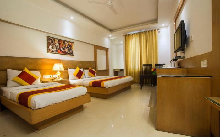 Great care is taken to ensure guests experience comfort through top-notch services and amenities. Remain linked during your visit by utilizing the complimentary internet access available.Prior to your check-in date, you can arrange airport transportation services, guaranteeing a seamless and efficient experience for both arrival and departure. Discovering New Delhi becomes even more accessible through the car hire and shuttle amenities provided at the hotel. The hotel offers complimentary parking for guests who arrive with their own mode of transport. Effortlessly plan your daily activities and travel requirements with concierge service, express check-in or check-out, luggage storage and safety deposit boxes provided by the front desk services. Securing passes to the city's top attractions is simple with the hotel's ticket service and tours. For extended visits or whenever required, the dry cleaning service and laundry service ensures your preferred travel garments remain clean and accessible.During leisurely days and evenings, in-room amenities such as 24-hour room service, room service and daily housekeeping enable you to maximize your stay in the room. The hotel is completely smoke-free. In limited designated zones, smoking is exclusively permitted. Crafted for coziness, every guestroom provides an array of features, guaranteeing a tranquil night's sleep while maintaining the level of comfort.For a more enjoyable stay, select rooms at hotel are equipped with linen service and air conditioning. For certain chosen rooms, guests can enjoy in-room amusement like daily newspaper, television and cable TV as a part of their stay.Rest assured that your hydration needs will be met, as some guestrooms are equipped with bottled water and mini bar.It is worth noting that certain guest bathrooms feature a hair dryer and toiletries for your convenience. Each morning at Hotel Krishna Deluxe, a scrumptious, homemade breakfast kick-starts the day. During your visit, indulge in a range of delightful culinary choices at hotel to enhance your experience. Experience a fantastic evening effortlessly! Relish an entertaining night without venturing beyond the confines of the bar.