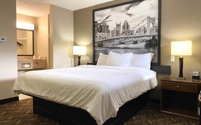 Super 8 by Wyndham Greensburg offers top-notch services and amenities, ensuring guests experience utmost comfort. Share your photos and respond to emails at your convenience, thanks to the free Wi-Fi internet access offered by hotel.Visitors can take advantage of complimentary parking directly at the hotel. Each accommodation at Super 8 by Wyndham Greensburg is thoughtfully created and adorned to provide visitors with a comfortable, home-like atmosphere. In select rooms, guests can enjoy a touch of amusement with the availability of television for their entertainment.Rest assured, in a few chosen rooms, you will find the convenience of a refrigerator and a coffee or tea maker at your disposal.Understanding the significance of bathroom amenities in enhancing guest contentment, the hotel offers a hair dryer within certain chosen rooms. Begin your holiday on a high note. At Super 8 by Wyndham Greensburg, your mornings are greeted with a delightful, free breakfast.