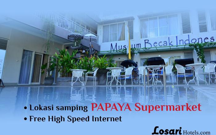 Losari Sunset Hotel offers top-notch services and amenities, ensuring guests experience utmost comfort. Share your photos and respond to emails at your convenience, thanks to the free Wi-Fi internet access offered by hotel.Should you require transportation to or from the airport, hotel is able to organize it prior to your arrival date.Taxi, car hire and shuttle offerings at the hotel simplify arranging your excursions, explorations, and additional activities in Bali. Visitors can take advantage of complimentary parking directly at the hotel.Reception services such as concierge service, luggage storage and safety deposit boxes are available to accommodate your requirements.Securing top-notch tickets and snagging sought-after dining reservations become effortless, thanks to the hotel's ticket service and tours.Traveling with minimal baggage is achievable at Losari Sunset Hotel, as the hotel's dry cleaning service and laundry service ensures your garments stay fresh.Room amenities like room service and daily housekeeping contribute to making a perfect selection for your stay. The hotel maintains a completely smoke-free zone, providing a breathable atmosphere. Smoking is limited to specified smoking zones.Each accommodation at Losari Sunset Hotel is thoughtfully created and adorned to provide visitors with a comfortable, home-like atmosphere.In select rooms of the hotel, guests can enjoy the advantage of having air conditioning available for their convenience.At Losari Sunset Hotel, the uniquely tailored rooms provide a configuration choice resembling a balcony or terrace. In select rooms, guests at the hotel can enjoy top-notch in-room entertainment with television and cable TV available for their convenience.Understanding the significance of bathroom amenities in enhancing guest contentment, the hotel offers toiletries within certain chosen rooms. Experience the delight of a fresh morning by savoring excellent coffee at the cafe situated within hotel.Should you prefer not to venture out for a meal, the enticing culinary choices at hotel are always available for your satisfaction.Experience an unforgettable evening with your fellow travelers just a short distance away, at hotel's bar. Losari Sunset Hotel provides a superb assortment of leisure amenities for guests to enjoy.Unwind after a long day by stopping by massage and spa to rejuvenate your senses.Each day at hotel, immerse yourself in the invigorating waters of the pool, perfect for a rejuvenating plunge or a series of revitalizing laps. Bypass the formal attire and choose a laid-back mixed drink or brew at hotel's waterside lounge.