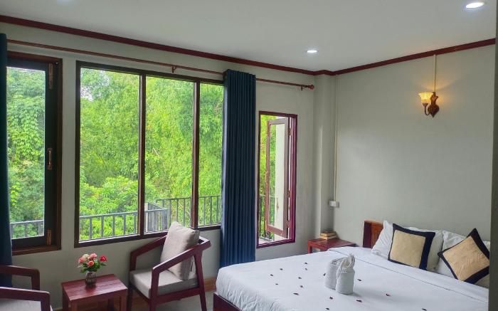 Great care is taken to ensure guests experience comfort through top-notch services and amenities. Stay connected with your associates, as complimentary Wi-Fi is available during your entire visit.To facilitate your arrival and departure, you can pre-book airport transfer services prior to checking in. When arriving by car, take advantage of the hotel's convenient on-site parking facilities. Whether you're here for an extended stay or simply require fresh garments, the hotel ensures your cherished travel attire remains spotless and accessible with the convenience of laundry service located on the premises.The hotel's daily housekeeping ensures an excellent option for your stay.In order to ensure the utmost level of relaxation, the guestrooms feature an inviting design and are equipped with all basic necessities, creating a delightful stay experience.Several chosen accommodations at Dok Champa Resort have a balcony or terrace incorporated into the room design. Selected rooms offer in-room amusement like television as a source of entertainment for guests to enjoy.Within specific rooms, a refrigerator, a coffee or tea maker and instant tea is conveniently available for your use. Understanding the significance of bathroom facilities in enhancing visitor contentment, hotel offers a hair dryer and toiletries within a few chosen chambers. Each day, arise to a delightful complimentary morning meal at Dok Champa Resort.Throughout the day, engage in the entertaining activities available at Dok Champa Resort.Unwind by the pool at hotel and cherish a leisurely moment.