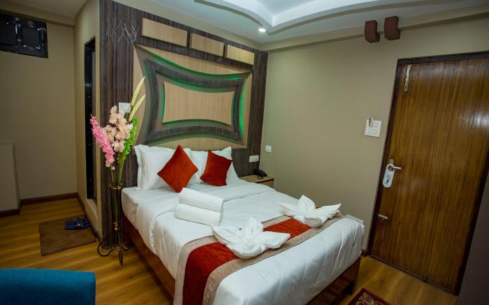 Experience an abundance of unparalleled facilities and features at Hotel Marinha Pvt. Ltd.. Maintain seamless communication using the complimentary Wi-Fi at hotel. Effortlessly arrange transportation to and from the airport using the hotel's airport transfer services.Discovering Kathmandu becomes even more accessible through the taxi, car hire and shuttle amenities provided at the hotel. For visitors traveling by automobile, complimentary parking is available.During your stay at this fantastic hotel, the attentive front desk personnel can provide you with a range of amenities such as concierge service and luggage storage.In search of city's top entertainment, seek assistance at the hotel's ticket service and tours for reservations.At the hotel, utilize the on-site dry cleaning service and laundry service to maintain your beloved travel attire fresh, allowing you to bring fewer clothes.Craving relaxation? Make the most of your stay at the Hotel Marinha Pvt. Ltd. with convenient amenities like 24-hour room service, room service and daily housekeeping at your disposal. At Hotel Marinha Pvt. Ltd., every guestroom is provided with convenient amenities and fittings to ensure a comfortable stay. Enhance your experience at hotel with the knowledge that certain rooms are equipped with linen service and air conditioning for your convenience.A few accommodations within Hotel Marinha Pvt. Ltd. offer unique design elements such as a balcony or terrace. Certain rooms boast in-room amusement features such as television and cable TV, offering guests an enjoyable stay. In select rooms within the hotel, a refrigerator, bottled water and mini bar is available to cater to your requirements when desired.In the hotel, certain guest bathrooms come equipped with essential bathroom amenities, such as a hair dryer and toiletries, ensuring a comfortable stay for guests. Begin your day carefree at Hotel Marinha Pvt. Ltd., as complimentary breakfast is offered for your convenience.Begin your day feeling refreshed and invigorated as you enjoy a delightful cup of quality coffee available at the cafe situated within the hotel. At the hotel, an assortment of easily accessible and delicious meal choices are available to satisfy your appetite whenever it strikes. Enjoy an entertaining evening with your fellow travelers at the hotel's bar.