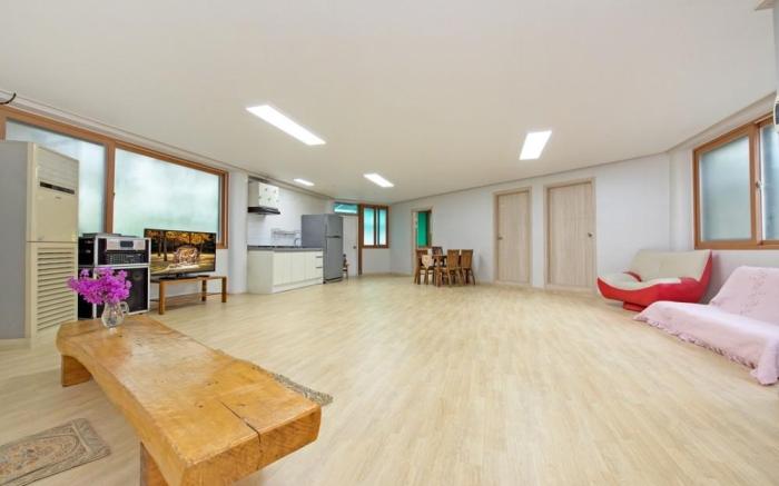 Experience an abundance of unparalleled facilities and features at Gangbyeonmaru Pension.Maintain seamless communication using the complimentary Wi-Fi at pension. Guests can avail parking facilities at the pension. During chilly days and evenings, the pension provides an in-house fireplace to ensure your warmth. At Gangbyeonmaru Pension, every guestroom is provided with convenient amenities and fittings to ensure a comfortable stay.Certain rooms offer in-room amusement features such as the television for your enjoyment.In select rooms at the pension, a refrigerator is available for those moments when it seems necessary.In the pension, certain guest bathrooms come equipped with essential bathroom amenities, such as a hair dryer and toiletries, ensuring a comfortable stay for guests. Enjoy an entertaining evening with your fellow travelers at the pension's karaoke rooms.At the pension, discerning guests can also enjoy on-site culinary facilities like BBQ facilities tailored to their preferences.