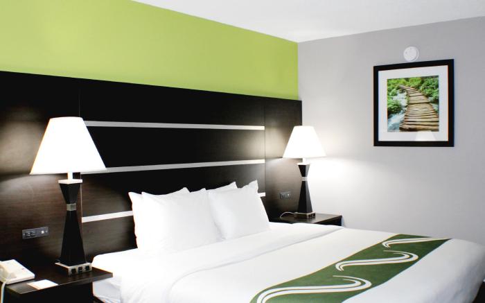 Quality Inn & Suites Bedford West provides flawless service and all the necessary facilities for visitors. Stay connected with your associates, as complimentary Wi-Fi is available during your entire visit. When arriving by car, you'll be grateful for the on-site complimentary parking at hotel.The hotel offers reception amenities including express check-in or check-out, luggage storage and safety deposit boxes to ensure a comfortable stay for guests. The hotel also features a fireplace, providing a cozy ambience during cool evenings.Whether it's an extended stay or simply needing fresh attire, laundromat, dry cleaning service and laundry service provided by hotel ensures your cherished travel garments stay spotless and accessible.Your stay will be comfortable with the presence of room service and daily housekeeping as an in-room amenity for your relaxation and enjoyment.To ensure the well-being and convenience of all visitors, smoking is strictly prohibited throughout the entire hotel.Smoking is permitted solely in the specified smoking zones allocated by hotel.In order to ensure the utmost level of relaxation, the guestrooms feature an inviting design and are equipped with all basic necessities, creating a delightful stay experience. To ensure a pleasant stay, a selection of rooms at hotel come furnished with linen service and air conditioning, all designed with your ease in mind.At Quality Inn & Suites Bedford West, various room configurations are available, featuring separate living room and balcony or terrace in some rooms.In select rooms, visitors can enjoy a touch of amusement with the availability of daily newspaper, television and cable TV for their entertainment needs. Within specific rooms, a refrigerator, a coffee or tea maker, instant coffee, instant tea and mini bar is conveniently available for your use.Understanding the significance of bathroom facilities in enhancing visitor contentment, hotel offers a hair dryer and toiletries within a few chosen chambers. Each day, arise to a delightful complimentary morning meal at Quality Inn & Suites Bedford West.How about kicking off each day of your getaway with a delicious cup of coffee? At the hotel, relish in the invigorating taste of a freshly brewed, excellent coffee.Upon your arrival, don't miss experiencing casino for enjoyable in-house evening entertainment.Throughout the day and night, guests can enjoy light refreshments with the hotel offering vending machines.Visitors wishing to create their personal culinary delights will appreciate the on-site BBQ facilities provided at this establishment. Throughout the day, engage in the entertaining activities available at Quality Inn & Suites Bedford West.Unwind effortlessly each day by exploring the hot tub, conveniently situated within the hotel.Unwind by the pool at hotel and cherish a leisurely moment. Guests who enjoy maintaining their fitness regimen while on holiday can visit the fitness center provided by hotel.