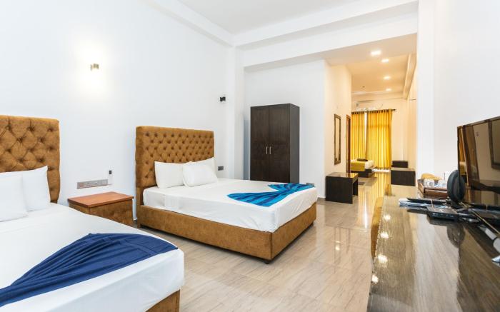 Polhena Grand Resort offers top-notch services and amenities, ensuring guests experience utmost comfort.Share your photos and respond to emails at your convenience, thanks to the free Wi-Fi internet access offered by hotel.Traveling with minimal luggage is achievable at Polhena Grand Resort due to the hotel's laundry service ensuring your garments stay fresh. Each accommodation at Polhena Grand Resort is thoughtfully created and adorned to provide visitors with a comfortable, home-like atmosphere. In select rooms of the hotel, guests can enjoy the advantage of having air conditioning available for their convenience. Embark on your holiday experience in the most ideal manner. Commence each morning of your visit with an on-site breakfast.