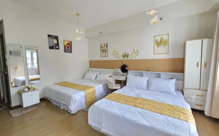 In order to ensure the utmost level of relaxation, the guestrooms feature an inviting design and are equipped with all basic necessities, creating a delightful stay experience.To ensure a pleasant stay, a selection of rooms at apartment come furnished with linen service and air conditioning, all designed with your ease in mind. In select rooms, visitors can enjoy a touch of amusement with the availability of television and cable TV for their entertainment needs. Within specific rooms, a coffee or tea maker, instant coffee and instant tea is conveniently available for your use. Understanding the significance of bathroom facilities in enhancing visitor contentment, apartment offers a hair dryer and toiletries within a few chosen chambers. Throughout the day, engage in the entertaining activities available at Auberge @SMDC Hope Residences. Unwind by the pool at apartment and cherish a leisurely moment.