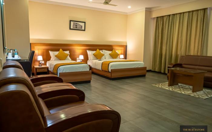 Hotel The Blackstone offers top-notch services and amenities, ensuring guests experience utmost comfort. Share your photos and respond to emails at your convenience, thanks to the free Wi-Fi internet access offered by hotel. Should you require transportation to or from the airport, hotel is able to organize it prior to your arrival date.Taxi and car hire offerings at the hotel simplify arranging your excursions, explorations, and additional activities in Bangalore.Visitors can take advantage of complimentary parking directly at the hotel. The accommodating team at the reception will aid you with amenities such as luggage storage.Traveling with minimal baggage is achievable at Hotel The Blackstone, as the hotel's dry cleaning service and laundry service ensures your garments stay fresh. Room amenities like 24-hour room service, room service and daily housekeeping contribute to making a perfect selection for your stay. The hotel maintains a completely smoke-free zone, providing a breathable atmosphere. Each accommodation at Hotel The Blackstone is thoughtfully created and adorned to provide visitors with a comfortable, home-like atmosphere. In certain rooms, the hotel offers linen service, blackout curtains and air conditioning for guest convenience and satisfaction. In select rooms, guests at the hotel can enjoy top-notch in-room entertainment with television and cable TV available for their convenience.Rest assured, in a few chosen rooms, you will find the convenience of bottled water and a coffee or tea maker at your disposal. Maintain your cleanliness and comfort using a hair dryer, toiletries and bathrobes available in select guest restrooms. Immerse yourself in the executive lounge, where exceptional amenities and lavish surroundings await you. Begin your holiday on a high note. At Hotel The Blackstone, your mornings are greeted with a delightful, free breakfast.Indulge in the numerous pursuits available at Hotel The Blackstone. Unwind after your day by exploring the spa and find warmth and relaxation.