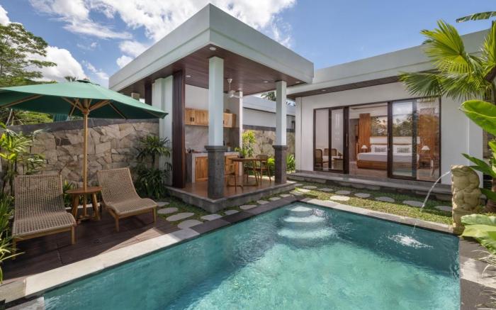 Arvanya Villa Ubud offers top-notch services and amenities, ensuring guests experience utmost comfort.Complimentary internet access is available in the resort villa to ensure you stay connected during your visit. Arrange your trips to and from the airport using the resort villa's convenient transportation services booking. Amenities at taxi offered by Arvanya Villa Ubud simplify the organization of your excursions, tourist activities, and other adventures in Bali. For guests with their own vehicle, parking facilities are provided. Continuously receive the support you require through front desk amenities such as express check-in or check-out and luggage storage. At the resort villa, their tours can even assist you in booking tickets and securing reservations for leisure activities and adventures. At the resort villa, utilize the convenient laundry service to maintain your preferred travel attire fresh, allowing you to pack lighter.Craving relaxation? In-room amenities such as room service and daily housekeeping allow you to maximize your time spent inside the room. Due to health concerns, smoking is strictly prohibited within the entire premises of resort villa.For the health and well-being of all guests and staff, smoking is restricted exclusively to assigned zones.Accommodations come equipped with all the conveniences required for a restful night's slumber. A selection of rooms feature linen service, blackout curtains and air conditioning to ensure your comfort and convenience.A few accommodations at Arvanya Villa Ubud also include unique design elements like a balcony or terrace.A number of rooms feature television for guest amusement and enjoyment. In certain rooms, the resort villa offers visitors access to a refrigerator, a coffee or tea maker, bottled water, instant tea and mini bar.Arvanya Villa Ubud offers a hair dryer, toiletries and bathrobes in the restrooms of specific accommodations. Allow your journey to be free from the pangs of hunger! On-site eateries offer delicious and accessible meal choices.An evening spent at resort villa's bar can offer as much enjoyment as venturing out with your fellow travelers. Are you inclined to prepare your own dishes? You will surely appreciate having the on-site shared kitchen available. Arvanya Villa Ubud provides a superb assortment of leisure amenities for guests to enjoy. Conclude your days in complete tranquility by visiting the massage situated precisely at the resort villa.At Arvanya Villa Ubud, a wide array of amenities guarantees a fulfilling experience throughout your visit. Make your holiday truly memorable by taking a rejuvenating plunge into the pool.