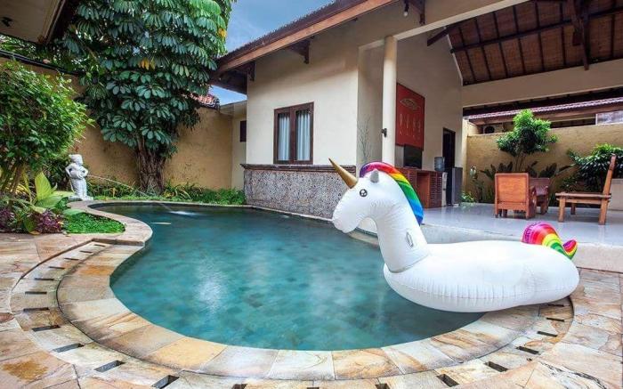 1 BR PRIVATE POOL VILLA AT SEMINYAK KUNTI KUTA provides flawless service and all the necessary facilities for visitors.Maintain seamless communication using the complimentary Wi-Fi at private villa.For visitors traveling by automobile, complimentary parking is available. For visitors wishing to smoke, designated smoking zones can be found.At 1 BR PRIVATE POOL VILLA AT SEMINYAK KUNTI KUTA, every guestroom is provided with convenient amenities and fittings to ensure a comfortable stay. Enhance your experience at private villa with the knowledge that certain rooms are equipped with linen service and air conditioning for your convenience. Certain rooms boast in-room amusement features such as television and cable TV, offering guests an enjoyable stay. In select rooms within the private villa, a coffee or tea maker, instant coffee and instant tea is available to cater to your requirements when desired. In the private villa, certain guest bathrooms come equipped with essential bathroom amenities, such as a hair dryer and toiletries, ensuring a comfortable stay for guests. Begin your day carefree at 1 BR PRIVATE POOL VILLA AT SEMINYAK KUNTI KUTA, as complimentary breakfast is offered for your convenience. At 1 BR PRIVATE POOL VILLA AT SEMINYAK KUNTI KUTA, guests can take pleasure in the delightful recreational amenities provided for their entertainment. Conclude your holiday experience perfectly by visiting hot tub before you depart.Be sure to drop by the pool at private villa at least once during your stay.