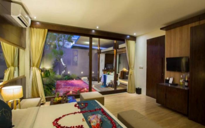 At ROMANTIC VILLA FOR HONEYMOON AT SEMINYAK, exceptional service and top-notch amenities create a memorable experience for guests.Complimentary parking is available for guests. Accommodations come equipped with all the conveniences required for a restful night's slumber. A selection of rooms feature linen service and air conditioning to ensure your comfort and convenience. A number of rooms feature television for guest amusement and enjoyment. In the private villa, certain guest bathrooms come equipped with essential bathroom amenities, such as a hair dryer and toiletries, ensuring a comfortable stay for guests. At ROMANTIC VILLA FOR HONEYMOON AT SEMINYAK, each day commences with a scrumptious breakfast offered at no additional cost. At ROMANTIC VILLA FOR HONEYMOON AT SEMINYAK, guests can take pleasure in the delightful recreational amenities provided for their entertainment.Conclude your days in complete tranquility by visiting the hot tub situated precisely at the private villa. At ROMANTIC VILLA FOR HONEYMOON AT SEMINYAK, a wide array of amenities guarantees a fulfilling experience throughout your visit. Make your holiday truly memorable by taking a rejuvenating plunge into the pool.