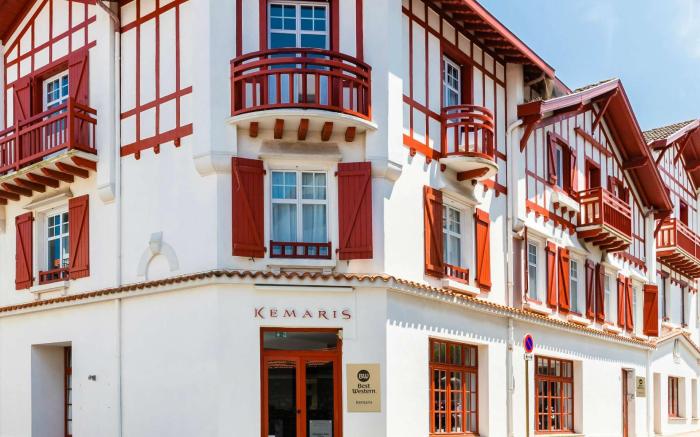Kemaris provides flawless service and all the necessary facilities for visitors. Stay connected with your associates, as complimentary Wi-Fi is available during your entire visit. The hotel offers taxi amenities to assist you in discovering your desired offerings in Biarritz. When arriving by car, take advantage of the hotel's convenient on-site parking facilities.The hotel offers reception amenities including concierge service, express check-in or check-out, luggage storage and safety deposit boxes to ensure a comfortable stay for guests.Whether you're here for an extended stay or simply require fresh garments, the hotel ensures your cherished travel attire remains spotless and accessible with the convenience of dry cleaning service located on the premises.Your stay will be comfortable with the presence of room service and daily housekeeping as an in-room amenity for your relaxation and enjoyment. To ensure the well-being and convenience of all visitors, smoking is strictly prohibited throughout the entire hotel. Smoking is permitted solely in the specified smoking zones allocated by hotel.In order to ensure the utmost level of relaxation, the guestrooms feature an inviting design and are equipped with all basic necessities, creating a delightful stay experience. To ensure your satisfaction, certain rooms in the hotel come fitted with air conditioning for a more pleasant stay.Several chosen accommodations at Kemaris have a balcony or terrace incorporated into the room design. Selected rooms offer in-room amusement like television as a source of entertainment for guests to enjoy. Rest assured, quenching your thirst is not a concern with mini bar available in select accommodations.Understanding the significance of bathroom facilities in enhancing visitor contentment, hotel offers a hair dryer and toiletries within a few chosen chambers. Start your day stress-free at Kemaris as breakfast is made available for you on the premises.How about kicking off each day of your getaway with a delicious cup of coffee? At the hotel, relish in the invigorating taste of a freshly brewed, excellent coffee. Upon your arrival, don't miss experiencing bar for enjoyable in-house evening entertainment. Throughout the day, engage in the entertaining activities available at Kemaris. Make sure to discover the readily available beach at hotel.Unwind effortlessly each day by exploring the salon, conveniently situated within the hotel.