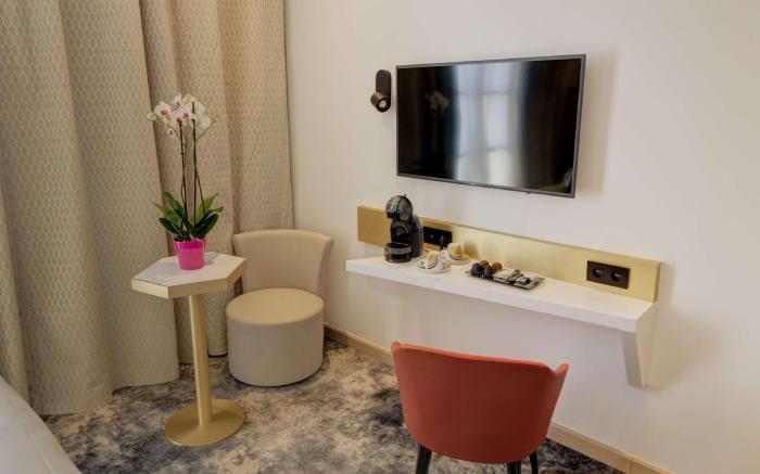 At Best Western Plus Hotel Comedie Saint-Roch, exceptional service and top-notch amenities create a memorable experience for guests. Complimentary internet access is available in the hotel to ensure you stay connected during your visit. Discover the wonders of Montpellier with ease by utilizing the services provided by taxi and car hire.Continuously receive the support you require through front desk amenities such as concierge service, express check-in or check-out, luggage storage and safety deposit boxes. At the hotel, their ticket service and tours is also capable of assisting with booking tickets and securing reservations for entertainment and adventures.Always look your best in your preferred attire with the dry cleaning service and laundry service provided at Best Western Plus Hotel Comedie Saint-Roch. Craving relaxation? In-room amenities such as room service and daily housekeeping allow you to maximize your time spent inside the room. Due to health concerns, smoking is strictly prohibited within the entire premises of hotel. Accommodations come equipped with all the conveniences required for a restful night's slumber. A selection of rooms at Best Western Plus Hotel Comedie Saint-Roch come furnished with air conditioning to cater to your needs and comfort. A few chosen rooms are equipped with television and cable TV to ensure guest amusement.In certain rooms, the hotel offers visitors access to a refrigerator, a coffee or tea maker and mini bar.Best Western Plus Hotel Comedie Saint-Roch offers a hair dryer, toiletries and bathrobes in the restrooms of specific accommodations. All adore a delightful cup of coffee! An on-site coffee shop ensures you can relish a cup of authentic, freshly-brewed coffee every morning -- or whenever you desire it.An evening spent at hotel's bar can offer as much enjoyment as venturing out with your fellow travelers.