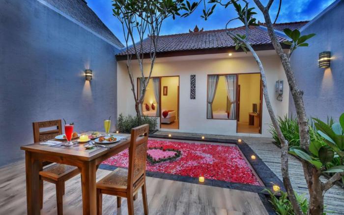 At 1 Bed Room Villa with Private Pool in Ubud Bali, exceptional service and top-notch amenities create a memorable experience for guests.The private villa offers complimentary parking for guests who arrive with their own mode of transport.In limited designated zones, smoking is exclusively permitted.Crafted for coziness, every guestroom provides an array of features, guaranteeing a tranquil night's sleep while maintaining the level of comfort. For a more enjoyable stay, select rooms at private villa are equipped with linen service and air conditioning.For certain chosen rooms, guests can enjoy in-room amusement like television and cable TV as a part of their stay. Rest assured that your hydration needs will be met, as some guestrooms are equipped with a coffee or tea maker, instant coffee and instant tea. It is worth noting that certain guest bathrooms feature a hair dryer and toiletries for your convenience. Begin your day on a delightful note with a scrumptious complimentary breakfast, consistently served at 1 Bed Room Villa with Private Pool in Ubud Bali.During your stay at private villa, an array of engaging activities and amenities guarantees a delightful experience. Treat and spoil yourself by taking a trip to hot tub. Begin your holiday perfectly by taking a plunge into the swimming pool.