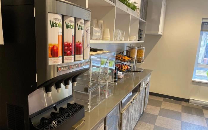 At Ramada by Wyndham Laval, exceptional service and top-notch amenities create a memorable experience for guests.Complimentary internet access is available in the hotel to ensure you stay connected during your visit. For guests with their own vehicle, parking facilities are provided.Due to health concerns, smoking is strictly prohibited within the entire premises of hotel. Accommodations come equipped with all the conveniences required for a restful night's slumber.A number of rooms feature cable TV for guest amusement and enjoyment.In certain chosen rooms, a coffee or tea maker is conveniently available for your use.At Ramada by Wyndham Laval, select bathrooms are equipped with a hair dryer to enhance your comfort during your stay. A delightful breakfast is the perfect way to begin your day, and at Ramada by Wyndham Laval, you can always indulge in a scrumptious meal on-site. At Ramada by Wyndham Laval, affordable refreshments are available 24/7 through the convenient vending machines on-site.At Ramada by Wyndham Laval, guests can take pleasure in the delightful recreational amenities provided for their entertainment.At the hotel fitness center, you have the option to engage in your daily exercise routine or simply alleviate your jet lag by breaking a sweat.