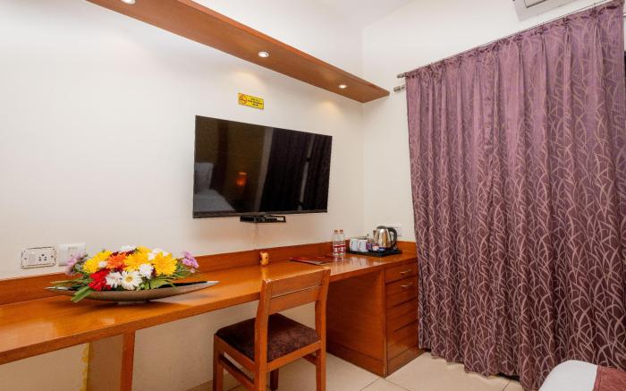 Great care is taken to ensure guests experience comfort through top-notch services and amenities. Stay connected with your associates, as complimentary Wi-Fi is available during your entire visit. When arriving by car, take advantage of the hotel's convenient on-site parking facilities.Whether you're here for an extended stay or simply require fresh garments, the hotel ensures your cherished travel attire remains spotless and accessible with the convenience of laundry service located on the premises.The hotel's daily housekeeping ensures an excellent option for your stay. In order to ensure the utmost level of relaxation, the guestrooms feature an inviting design and are equipped with all basic necessities, creating a delightful stay experience.To ensure a pleasant stay, a selection of rooms at hotel come furnished with linen service and air conditioning, all designed with your ease in mind.In select rooms, visitors can enjoy a touch of amusement with the availability of television and cable TV for their entertainment needs.Rest assured, quenching your thirst is not a concern with a coffee or tea maker available in select accommodations.Understanding the significance of bathroom facilities in enhancing visitor contentment, hotel offers a hair dryer, toiletries and towels within a few chosen chambers. Each day, arise to a delightful complimentary morning meal at ASTRA HOTEL AND SUITES SARJAPURA ROAD NEAR WIPRO.
