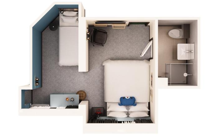 Double or Twin Room with Shared Toilet and Bathroom in Basement