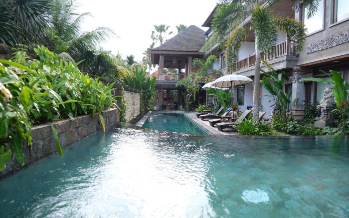 At Budhiayu Villas Ubud, exceptional service and top-notch amenities create a memorable experience for guests.Complimentary internet access is available in the resort villa to ensure you stay connected during your visit. Arrange your trips to and from the airport using the resort villa's convenient transportation services booking.Discover the wonders of Bali with ease by utilizing the services provided by taxi, car hire and shuttle. Complimentary parking is available for guests.Continuously receive the support you require through front desk amenities such as concierge service, luggage storage and safety deposit boxes.At the resort villa, their ticket service and tours is also capable of assisting with booking tickets and securing reservations for entertainment and adventures.Always look your best in your preferred attire with the laundromat, dry cleaning service and laundry service provided at Budhiayu Villas Ubud. Craving relaxation? In-room amenities such as room service and daily housekeeping allow you to maximize your time spent inside the room.For the health and well-being of all guests and staff, smoking is restricted exclusively to assigned zones. Accommodations come equipped with all the conveniences required for a restful night's slumber. A selection of rooms feature linen service, blackout curtains and air conditioning to ensure your comfort and convenience. A few accommodations at Budhiayu Villas Ubud also include unique design elements like a balcony or terrace.A number of rooms feature television for guest amusement and enjoyment. In certain rooms, the resort villa offers visitors access to a refrigerator, bottled water, a coffee or tea maker and mini bar. Budhiayu Villas Ubud offers a hair dryer and toiletries in the restrooms of specific accommodations. A delightful breakfast is the perfect way to begin your day, and at Budhiayu Villas Ubud, you can always indulge in a scrumptious meal on-site. Allow your journey to be free from the pangs of hunger! On-site eateries offer delicious and accessible meal choices.An evening spent at resort villa's bar can offer as much enjoyment as venturing out with your fellow travelers.Are you inclined to prepare your own dishes? You will surely appreciate having the on-site BBQ facilities available.At Budhiayu Villas Ubud, guests can take pleasure in the delightful recreational amenities provided for their entertainment.Conclude your days in complete tranquility by paying a visit to massage, spa and sauna for ultimate relaxation. At Budhiayu Villas Ubud, a wide array of amenities guarantees a fulfilling experience throughout your visit. Make your holiday truly memorable by taking a rejuvenating plunge into the pool. At the resort villa fitness center, you have the option to engage in your daily exercise routine or simply alleviate your jet lag by breaking a sweat.