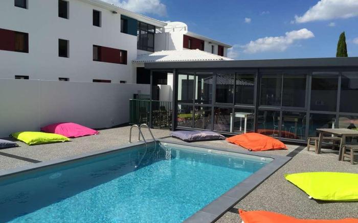 Kyriad Direct La Rochelle Aytré offers top-notch services and amenities, ensuring guests experience utmost comfort.Share your photos and respond to emails at your convenience, thanks to the free Wi-Fi internet access offered by hotel. Visitors can take advantage of complimentary parking directly at the hotel.Room amenities feature daily housekeeping, allowing you to unwind and make the most of your visit.The hotel maintains a completely smoke-free zone, providing a breathable atmosphere. Each accommodation at Kyriad Direct La Rochelle Aytré is thoughtfully created and adorned to provide visitors with a comfortable, home-like atmosphere.In certain rooms, the hotel offers blackout curtains and air conditioning for guest convenience and satisfaction. In select rooms, guests can enjoy a touch of amusement with the availability of television for their entertainment.Maintain your cleanliness and comfort using a hair dryer and toiletries available in select guest restrooms. Embark on your holiday experience in the most ideal manner. Commence each morning of your visit with an on-site breakfast. Experience an unforgettable evening with your fellow travelers just a short distance away, at hotel's bar. Kyriad Direct La Rochelle Aytré provides a superb assortment of leisure amenities for guests to enjoy. Each day at hotel, immerse yourself in the invigorating waters of the pool, perfect for a rejuvenating plunge or a series of revitalizing laps.