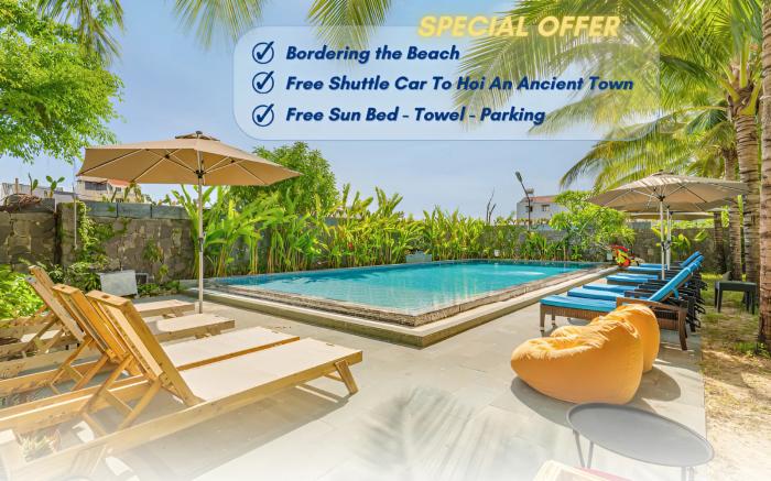 Experience an abundance of unparalleled facilities and features at Athenia Boutique Hotel & Spa. Share your photos and respond to emails at your convenience, thanks to the free Wi-Fi internet access offered by hotel.Should you require transportation to or from the airport, hotel is able to organize it prior to your arrival date. Taxi, car hire and shuttle offerings at the hotel simplify arranging your excursions, explorations, and additional activities in Hoi An. Visitors can take advantage of the accessible parking options directly at the hotel.Reception services such as concierge service, express check-in or check-out, luggage storage and safety deposit boxes are available to accommodate your requirements. Securing top-notch tickets and snagging sought-after dining reservations become effortless, thanks to the hotel's ticket service and tours. Traveling with minimal baggage is achievable at Athenia Boutique Hotel & Spa, as the hotel's dry cleaning service and laundry service ensures your garments stay fresh. Room amenities like room service and daily housekeeping contribute to making a perfect selection for your stay. Minor items you neglected to bring won't cause major issues! Simply visit convenience stores to acquire what's necessary. The hotel maintains a completely smoke-free zone, providing a breathable atmosphere. Smoking is limited to specified smoking zones.Each accommodation at Athenia Boutique Hotel & Spa is thoughtfully created and adorned to provide visitors with a comfortable, home-like atmosphere. In certain rooms, the hotel offers linen service, blackout curtains and air conditioning for guest convenience and satisfaction.At Athenia Boutique Hotel & Spa, uniquely crafted rooms provide various layout choices, featuring spaces equipped with separate living room and balcony or terrace.In select rooms, guests can enjoy a touch of amusement with the availability of television for their entertainment. Rest assured, in a few chosen rooms, you will find the convenience of a refrigerator, bottled water, instant coffee, instant tea and mini bar at your disposal. Maintain your cleanliness and comfort using a hair dryer, toiletries, bathrobes and towels available in select guest restrooms. Begin your holiday on a high note. At Athenia Boutique Hotel & Spa, your mornings are greeted with a delightful, free breakfast. Experience the delight of a fresh morning by savoring excellent coffee at the cafe situated within hotel. Should you prefer not to venture out for a meal, the enticing culinary choices at hotel are always available for your satisfaction.Experience an unforgettable evening with your fellow travelers just a short distance away, at hotel's bar. Indulge in the numerous pursuits available at Athenia Boutique Hotel & Spa.Make certain to allocate time for discovering the shoreline, easily reachable right from the hotel.Unwind after a long day by stopping by massage and spa to rejuvenate your senses.Each day at hotel, immerse yourself in the invigorating waters of the pool, perfect for a rejuvenating plunge or a series of revitalizing laps.