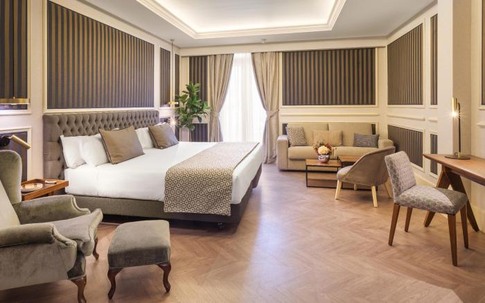 Great care is taken to ensure guests experience comfort through top-notch services and amenities. Stay connected with your associates, as complimentary Wi-Fi is available during your entire visit. The hotel offers car hire amenities to assist you in discovering your desired offerings in Madrid.When arriving by car, take advantage of the hotel's convenient on-site parking facilities.The hotel offers reception amenities including concierge service, express check-in or check-out and luggage storage to ensure a comfortable stay for guests. Should you require assistance, the ticket service and tours can also aid in booking tickets and securing reservations at the finest shows and events in the vicinity. Whether it's an extended stay or simply needing fresh attire, dry cleaning service and laundry service provided by hotel ensures your cherished travel garments stay spotless and accessible.Your stay will be comfortable with the presence of room service and daily housekeeping as an in-room amenity for your relaxation and enjoyment.To ensure the well-being and convenience of all visitors, smoking is strictly prohibited throughout the entire hotel.Smoking is permitted solely in the specified smoking zones allocated by hotel.In order to ensure the utmost level of relaxation, the guestrooms feature an inviting design and are equipped with all basic necessities, creating a delightful stay experience.To ensure a pleasant stay, a selection of rooms at hotel come furnished with blackout curtains and air conditioning, all designed with your ease in mind.In select rooms, visitors can enjoy a touch of amusement with the availability of television and cable TV for their entertainment needs. Within specific rooms, a coffee or tea maker and mini bar is conveniently available for your use. Understanding the significance of bathroom facilities in enhancing visitor contentment, hotel offers a hair dryer, toiletries and bathrobes within a few chosen chambers. Start your day stress-free at Catalonia Las Cortes Hotel as breakfast is made available for you on the premises.Various excellent meal offerings at hotel ensure that enticing and easily accessible options are constantly available. Upon your arrival, don't miss experiencing bar for enjoyable in-house evening entertainment.Throughout the day, engage in the entertaining activities available at Catalonia Las Cortes Hotel. Unwind effortlessly each day by exploring the salon, conveniently situated within the hotel.Guests who enjoy maintaining their fitness regimen while on holiday can visit the fitness center provided by hotel.