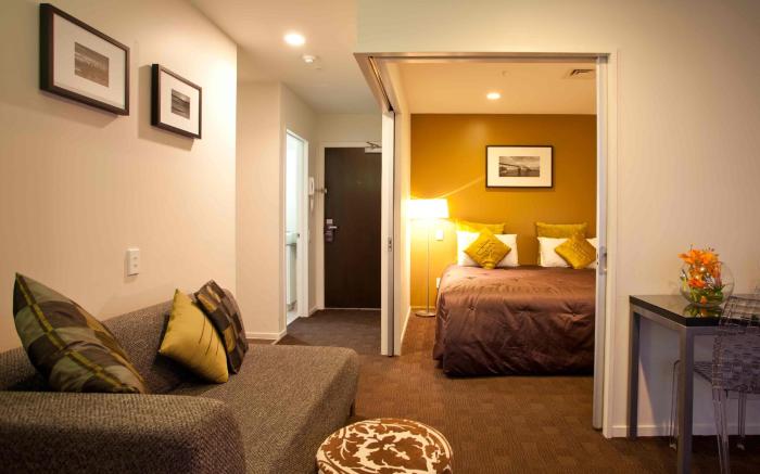 The Quadrant Hotel & Suites provides flawless service and all the necessary facilities for visitors.Stay connected with your associates, as complimentary Wi-Fi is available during your entire visit.To facilitate your arrival and departure, you can pre-book airport transfer services prior to checking in.The serviced apartment offers taxi, car hire and shuttle amenities for your ease in navigating around Auckland. When arriving by car, take advantage of the serviced apartment's convenient on-site parking facilities.The serviced apartment offers reception amenities including concierge service, luggage storage and safety deposit boxes to ensure a comfortable stay for guests. Should you require it, the tours can even assist you in booking tickets and securing reservations for the finest shows and events in the vicinity.Whether you're here for an extended stay or simply require fresh garments, the serviced apartment ensures your cherished travel attire remains spotless and accessible with the convenience of laundry service located on the premises. The serviced apartment's daily housekeeping ensures an excellent option for your stay. To ensure the well-being and convenience of all visitors, smoking is strictly prohibited throughout the entire serviced apartment.In order to ensure the utmost level of relaxation, the guestrooms feature an inviting design and are equipped with all basic necessities, creating a delightful stay experience.To ensure a pleasant stay, a selection of rooms at serviced apartment come furnished with linen service and air conditioning, all designed with your ease in mind. Several chosen accommodations at The Quadrant Hotel & Suites have a balcony or terrace incorporated into the room design.In select rooms, visitors can enjoy a touch of amusement with the availability of television and cable TV for their entertainment needs.Within specific rooms, a refrigerator and a coffee or tea maker is conveniently available for your use. Understanding the significance of bathroom facilities in enhancing visitor contentment, serviced apartment offers a hair dryer and toiletries within a few chosen chambers. Start your day stress-free at The Quadrant Hotel & Suites as breakfast is made available for you on the premises.Throughout the day, engage in the entertaining activities available at The Quadrant Hotel & Suites.Unwind and conclude each day delightfully by stopping by massage, hot tub, steam room, spa and sauna, ensuring a soothing experience. Guests who enjoy maintaining their fitness regimen while on holiday can visit the fitness center provided by serviced apartment.