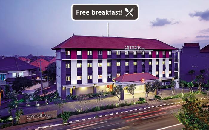 Great care is taken to ensure guests experience comfort through top-notch services and amenities.Stay connected with your associates, as complimentary Wi-Fi is available during your entire visit. When arriving by car, you'll be grateful for the on-site complimentary parking at hotel.The hotel offers reception amenities including concierge service, express check-in or check-out, luggage storage and safety deposit boxes to ensure a comfortable stay for guests. Whether you're here for an extended stay or simply require fresh garments, the hotel ensures your cherished travel attire remains spotless and accessible with the convenience of dry cleaning service located on the premises. Your stay will be comfortable with the presence of room service and daily housekeeping as an in-room amenity for your relaxation and enjoyment.Smoking is permitted solely in the specified smoking zones allocated by hotel. In order to ensure the utmost level of relaxation, the guestrooms feature an inviting design and are equipped with all basic necessities, creating a delightful stay experience. To ensure a pleasant stay, a selection of rooms at hotel come furnished with blackout curtains and air conditioning, all designed with your ease in mind.Several chosen accommodations at Amaris Hotel Teuku Umar have a balcony or terrace incorporated into the room design.In select rooms, visitors can enjoy a touch of amusement with the availability of television and cable TV for their entertainment needs. Within specific rooms, a coffee or tea maker, bottled water, instant coffee and instant tea is conveniently available for your use. Understanding the significance of bathroom facilities in enhancing visitor contentment, hotel offers a hair dryer and toiletries within a few chosen chambers. Start your day stress-free at Amaris Hotel Teuku Umar as breakfast is made available for you on the premises. How about kicking off each day of your getaway with a delicious cup of coffee? At the hotel, relish in the invigorating taste of a freshly brewed, excellent coffee. Various excellent meal offerings at hotel ensure that enticing and easily accessible options are constantly available.Throughout the day, engage in the entertaining activities available at Amaris Hotel Teuku Umar. Unwind by the pool at hotel and cherish a leisurely moment.