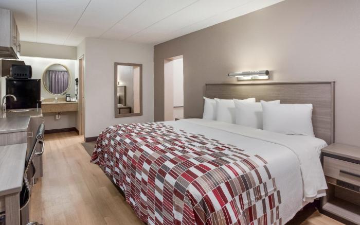 Great care is taken to ensure guests experience comfort through top-notch services and amenities. Remain linked during your visit by utilizing the complimentary internet access available. The hotel offers complimentary parking for guests who arrive with their own mode of transport. Repeatedly enjoy your best-loved attire with the aid of the laundromat available at Red Roof Inn Philadelphia - Trevose.Need some relaxation? Your room features daily housekeeping to make your stay even more comfortable and enjoyable. The hotel is completely smoke-free.In limited designated zones, smoking is exclusively permitted. Crafted for coziness, every guestroom provides an array of features, guaranteeing a tranquil night's sleep while maintaining the level of comfort. For a more enjoyable stay, select rooms at hotel are equipped with linen service, blackout curtains and air conditioning. At Red Roof Inn Philadelphia - Trevose, a selection of rooms can be found that showcase unique design elements such as a separate living room.For certain chosen rooms, guests can enjoy in-room amusement like television and cable TV as a part of their stay.Rest assured that your hydration needs will be met, as some guestrooms are equipped with a refrigerator, a coffee or tea maker, instant coffee and instant tea.Maintain your cleanliness and comfort using a hair dryer, toiletries and towels available in select guest restrooms. Snack vending machines operate around the clock, providing you with easy access to treats regardless of the hour.