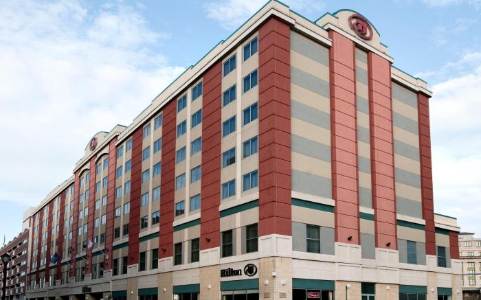 At Hilton Scranton & Conference Center, exceptional service and top-notch amenities create a memorable experience for guests.Complimentary internet access is available in the hotel to ensure you stay connected during your visit.Amenities at shuttle offered by Hilton Scranton & Conference Center simplify the organization of your excursions, tourist activities, and other adventures in Scranton (PA).For guests with their own vehicle, parking facilities are provided.Continuously receive the support you require through front desk amenities such as luggage storage and safety deposit boxes.At the hotel, utilize the convenient laundry service to maintain your preferred travel attire fresh, allowing you to pack lighter.Craving relaxation? In-room amenities such as room service and daily housekeeping allow you to maximize your time spent inside the room.Due to health concerns, smoking is strictly prohibited within the entire premises of hotel.Accommodations come equipped with all the conveniences required for a restful night's slumber. A selection of rooms feature blackout curtains and air conditioning to ensure your comfort and convenience.A few chosen rooms are equipped with television, in-room video streaming and cable TV to ensure guest amusement. In certain rooms, the hotel offers visitors access to a refrigerator and instant tea. Hilton Scranton & Conference Center offers a hair dryer, toiletries and bathrobes in the restrooms of specific accommodations. All adore a delightful cup of coffee! An on-site coffee shop ensures you can relish a cup of authentic, freshly-brewed coffee every morning -- or whenever you desire it.Allow your journey to be free from the pangs of hunger! On-site eateries offer delicious and accessible meal choices.An evening spent at hotel's bar can offer as much enjoyment as venturing out with your fellow travelers.At Hilton Scranton & Conference Center, guests can take pleasure in the delightful recreational amenities provided for their entertainment.At Hilton Scranton & Conference Center, a wide array of amenities guarantees a fulfilling experience throughout your visit. Make your holiday truly memorable by taking a rejuvenating plunge into the pool.At the hotel fitness center, you have the option to engage in your daily exercise routine or simply alleviate your jet lag by breaking a sweat.