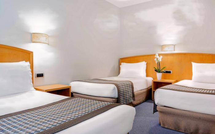 At Hotel Exe Area Central, exceptional service and top-notch amenities create a memorable experience for guests.Complimentary internet access is available in the hotel to ensure you stay connected during your visit.Amenities at car hire offered by Hotel Exe Area Central simplify the organization of your excursions, tourist activities, and other adventures in Santiago De Compostela. For guests with their own vehicle, parking facilities are provided. Continuously receive the support you require through front desk amenities such as express check-in or check-out. Always look your best in your preferred attire with the dry cleaning service and laundry service provided at Hotel Exe Area Central.Desire to unwind? Make the most of your visit at Hotel Exe Area Central with accessible amenities such as daily housekeeping. Due to health concerns, smoking is strictly prohibited within the entire premises of hotel. Accommodations come equipped with all the conveniences required for a restful night's slumber. A selection of rooms feature blackout curtains and air conditioning to ensure your comfort and convenience. A number of rooms feature television for guest amusement and enjoyment.In certain chosen rooms, mini bar is conveniently available for your use. Hotel Exe Area Central offers a hair dryer and toiletries in the restrooms of specific accommodations. A delightful breakfast is the perfect way to begin your day, and at Hotel Exe Area Central, you can always indulge in a scrumptious meal on-site.