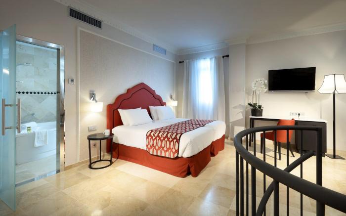 Great care is taken to ensure guests experience comfort through top-notch services and amenities. Stay connected with your associates, as complimentary Wi-Fi is available during your entire visit.The hotel offers car hire amenities to assist you in discovering your desired offerings in Seville.When arriving by car, take advantage of the hotel's convenient on-site parking facilities.The hotel offers reception amenities including concierge service, luggage storage and safety deposit boxes to ensure a comfortable stay for guests. Should you require assistance, the ticket service and tours can also aid in booking tickets and securing reservations at the finest shows and events in the vicinity.Whether it's an extended stay or simply needing fresh attire, dry cleaning service and laundry service provided by hotel ensures your cherished travel garments stay spotless and accessible.Your stay will be comfortable with the presence of room service and daily housekeeping as an in-room amenity for your relaxation and enjoyment. To ensure the well-being and convenience of all visitors, smoking is strictly prohibited throughout the entire hotel. In order to ensure the utmost level of relaxation, the guestrooms feature an inviting design and are equipped with all basic necessities, creating a delightful stay experience.To ensure a pleasant stay, a selection of rooms at hotel come furnished with linen service and air conditioning, all designed with your ease in mind. Several chosen accommodations at Eurostars Regina Hotel have a balcony or terrace incorporated into the room design.In select rooms, visitors can enjoy a touch of amusement with the availability of television and cable TV for their entertainment needs. Rest assured, quenching your thirst is not a concern with mini bar available in select accommodations. Understanding the significance of bathroom facilities in enhancing visitor contentment, hotel offers a hair dryer and toiletries within a few chosen chambers. Start your day stress-free at Eurostars Regina Hotel as breakfast is made available for you on the premises.Upon your arrival, don't miss experiencing bar for enjoyable in-house evening entertainment.