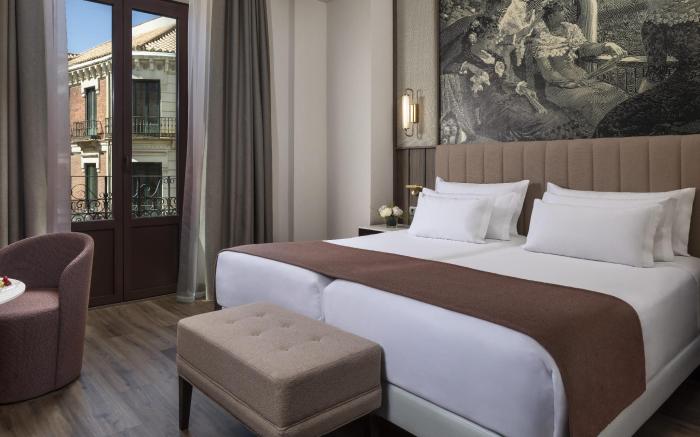 At NH Collection Granada Victoria, exceptional service and top-notch amenities create a memorable experience for guests. Complimentary internet access is available in the hotel to ensure you stay connected during your visit. Arrange your trips to and from the airport using the hotel's convenient transportation services booking.Amenities at shuttle offered by NH Collection Granada Victoria simplify the organization of your excursions, tourist activities, and other adventures in Granada. Complimentary parking is available for guests. Continuously receive the support you require through front desk amenities such as express check-in or check-out and safety deposit boxes.At the hotel, their ticket service and tours is also capable of assisting with booking tickets and securing reservations for entertainment and adventures. Always look your best in your preferred attire with the dry cleaning service and laundry service provided at NH Collection Granada Victoria.Craving relaxation? In-room amenities such as room service and daily housekeeping allow you to maximize your time spent inside the room. Due to health concerns, smoking is strictly prohibited within the entire premises of hotel. Accommodations come equipped with all the conveniences required for a restful night's slumber. A selection of rooms feature linen service, blackout curtains and air conditioning to ensure your comfort and convenience. A few accommodations at NH Collection Granada Victoria also include unique design elements like a balcony or terrace. A few chosen rooms are equipped with television and cable TV to ensure guest amusement. In certain rooms, the hotel offers visitors access to a refrigerator, a coffee or tea maker and mini bar.In the hotel, certain guest bathrooms come equipped with essential bathroom amenities, such as a hair dryer, toiletries, bathrobes and towels, ensuring a comfortable stay for guests. A delightful breakfast is the perfect way to begin your day, and at NH Collection Granada Victoria, you can always indulge in a scrumptious meal on-site. Allow your journey to be free from the pangs of hunger! On-site eateries offer delicious and accessible meal choices.