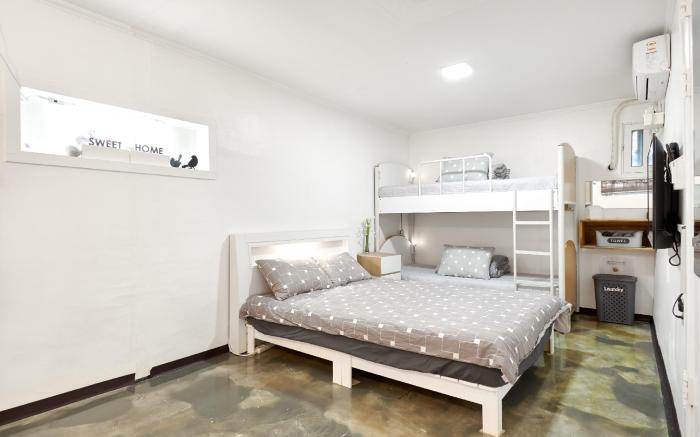 At Jun Guesthouse Hongdae, exceptional service and top-notch amenities create a memorable experience for guests. Complimentary internet access is available in the hotel to ensure you stay connected during your visit. Complimentary parking is available for guests.At the hotel, their tours can even assist you in booking tickets and securing reservations for leisure activities and adventures.At the hotel, utilize the convenient laundromat to maintain your preferred travel attire fresh, allowing you to pack lighter. Desire to unwind? Make the most of your visit at Jun Guesthouse Hongdae with accessible amenities such as daily housekeeping.Due to health concerns, smoking is strictly prohibited within the entire premises of hotel. For the health and well-being of all guests and staff, smoking is restricted exclusively to assigned zones. Accommodations come equipped with all the conveniences required for a restful night's slumber.A selection of rooms at Jun Guesthouse Hongdae come furnished with air conditioning to cater to your needs and comfort. A few accommodations in Jun Guesthouse Hongdae incorporate separate living room and balcony or terrace into their architectural arrangement. A number of rooms feature television for guest amusement and enjoyment.In certain rooms, the hotel offers visitors access to a refrigerator, bottled water, instant coffee and instant tea. In the hotel, certain guest bathrooms come equipped with essential bathroom amenities, such as a hair dryer and toiletries, ensuring a comfortable stay for guests.