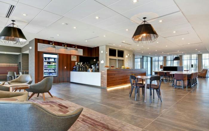 Experience an abundance of unparalleled facilities and features at Courtyard by Marriott Bentonville Rogers Promenade.Visitors can take advantage of the accessible parking options directly at the hotel.The accommodating team at the reception will aid you with amenities such as safety deposit boxes.Traveling with minimal luggage is achievable at Courtyard by Marriott Bentonville Rogers Promenade due to the hotel's dry cleaning service ensuring your garments stay fresh.Room amenities feature daily housekeeping, allowing you to unwind and make the most of your visit. Minor items you neglected to bring won't cause major issues! Simply visit convenience stores to acquire what's necessary. Each accommodation at Courtyard by Marriott Bentonville Rogers Promenade is thoughtfully created and adorned to provide visitors with a comfortable, home-like atmosphere. In select rooms, guests can enjoy a touch of amusement with the availability of cable TV for their entertainment.Rest assured, in a few chosen rooms, the presence of instant tea can be found.Understanding the significance of bathroom amenities in enhancing guest contentment, the hotel offers a hair dryer within certain chosen rooms. Experience the delight of a fresh morning by savoring excellent coffee at the cafe situated within hotel. Experience an unforgettable evening with your fellow travelers just a short distance away, at hotel's bar.